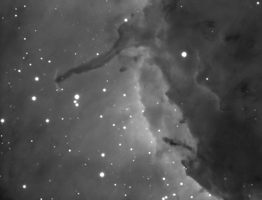 Optical System: 348/3007mm Hypergraph-Cassegrain, Starlight Xpress SXV-H9, AstroMechanik Filter wheel AM4 and custom made 11nm H-alpha filter, Astro-Physics 1200 QMD with Koch FS-2-GoTo. Off-axis guided with Starlight Xpress MX 516 without AO7.